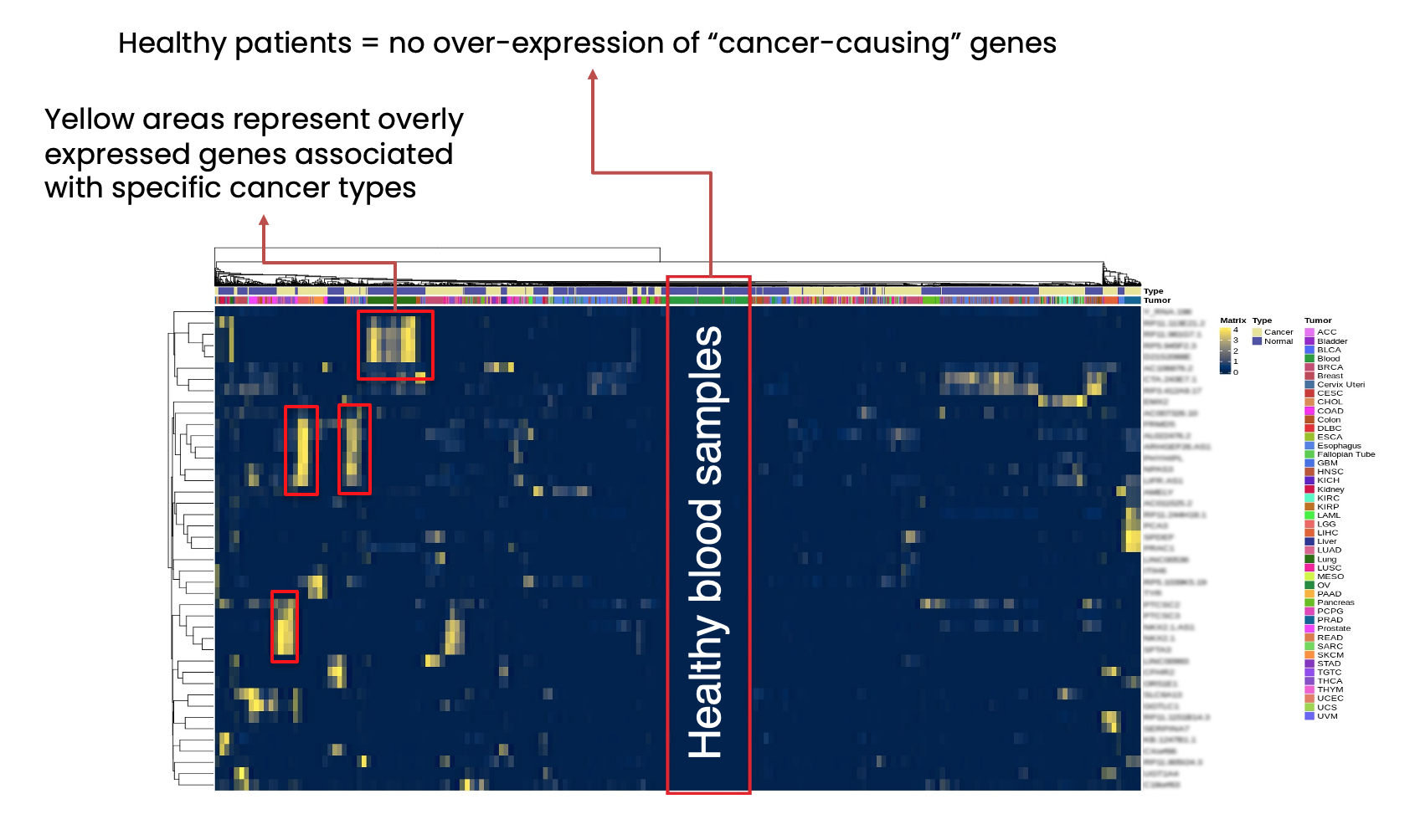 We use Brainome to identify genes that are consistently over-expressed in different tumor types