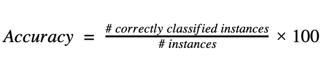 Number of correctly predicted outcomes as a percentage of total number of predictions made. Measured in percent (%).